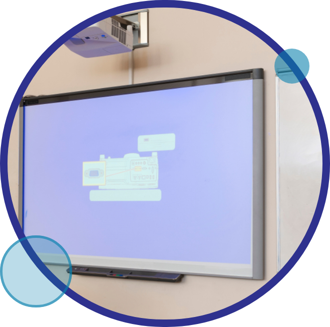 Smart Board : Molly Board-IO 9082 Data Show : View Sonic – PS 700X Cables and all installation Needs. Modern P.C